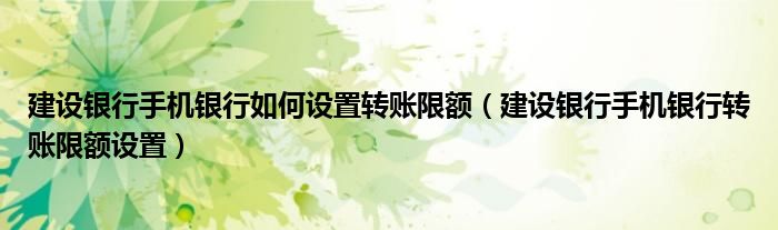 建设银行手机银行如何设置转账限额(建设银行手机银行转账限额设置)