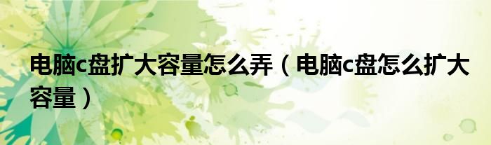 电脑c盘扩大容量怎么弄(电脑c盘怎么扩大容量)