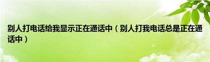 别人打电话给我显示正在通话中(别人打我电话总是正在通话中)