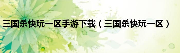 三国杀快玩一区手游下载(三国杀快玩一区)