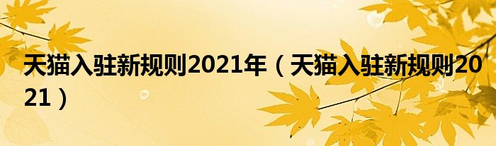 天猫入驻新规则2021年(天猫入驻新规则2021)
