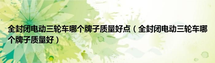 全封闭电动三轮车哪个牌子质量好点(全封闭电动三轮车哪个牌子质量好)