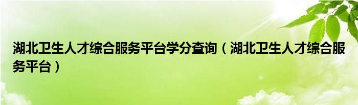 湖北卫生人才综合服务平台学分查询(湖北卫生人才综合服务平台)