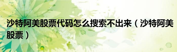 沙特阿美股票代码怎么搜索不出来(沙特阿美股票)