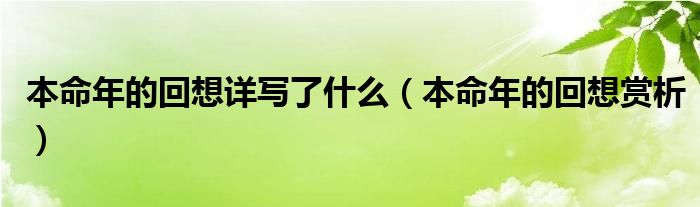 今天菲菲来为大家解答以上的问题。本命年的回想详写了什么,本命年的回想赏析相信很多小伙伴还不知道,现在让我们一起来看看吧!