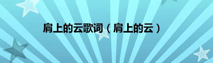 今天菲菲来为大家解答以上的问题。肩上的云歌词,肩上的云相信很多小伙伴还不知道,现在让我们一起来看看吧!