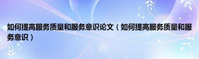 如何提高服务质量和服务意识论文(如何提高服务质量和服务意识)