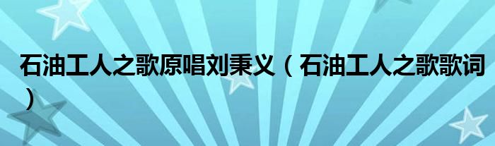 今天菲菲来为大家解答以上的问题。石油工人之歌原唱刘秉义,石油工人之歌歌词相信很多小伙伴还不知道,现在让我们一起来看看吧!