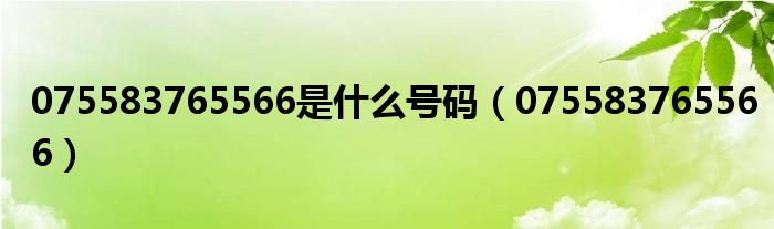 今天菲菲来为大家解答以上的问题。075583765566是什么号码,075583765566相信很多小伙伴还不知道,现在让我们一起来看看吧!