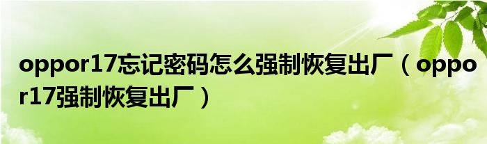 oppor17忘记密码怎么强制恢复出厂(oppor17强制恢复出厂)