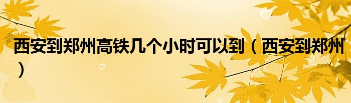 西安到郑州高铁几个小时可以到(西安到郑州)
