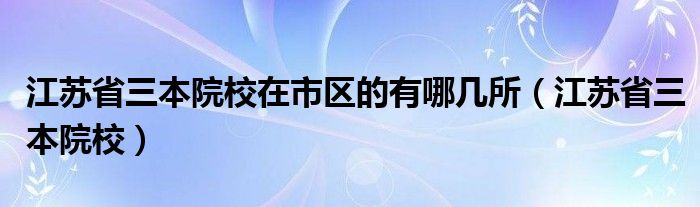 江苏省三本院校在市区的有哪几所(江苏省三本院校)