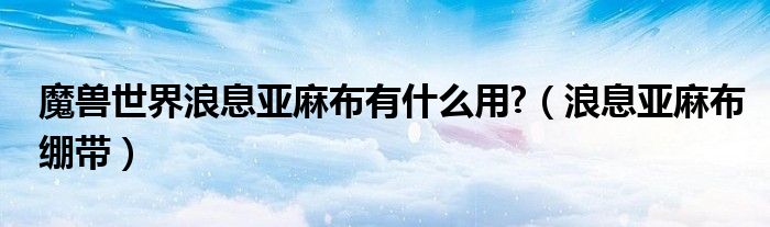 魔兽世界浪息亚麻布有什么用?(浪息亚麻布绷带)