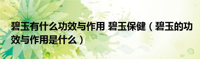 碧玉有什么功效与作用 碧玉保健(碧玉的功效与作用是什么)