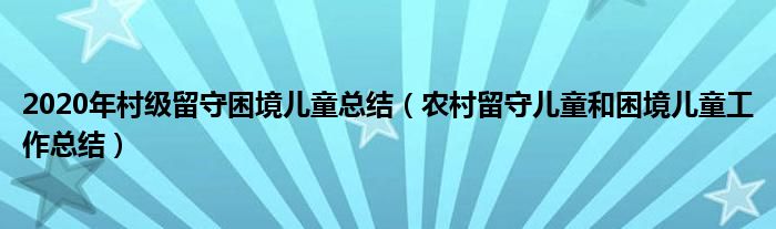 2020年村级留守困境儿童总结(农村留守儿童和困境儿童工作总结)