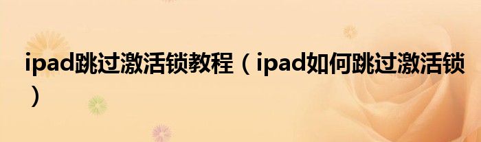 ipad跳过激活锁教程(ipad如何跳过激活锁)