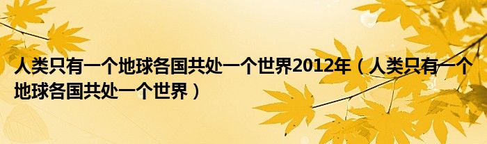 人类只有一个地球各国共处一个世界2012年(人类只有一个地球各国共处一个世界)