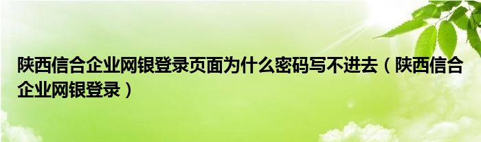 陕西信合企业网银登录页面为什么密码写不进去(陕西信合企业网银登录)