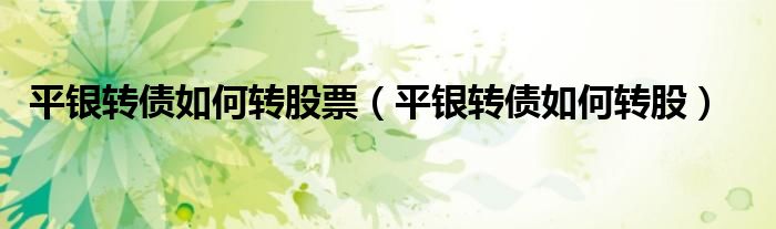 今天菲菲来为大家解答以上的问题。平银转债如何转股票,平银转债如何转股相信很多小伙伴还不知道,现在让我们一起来看看吧!